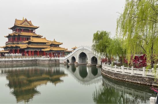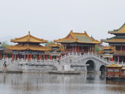 ▲ 清明上河图景区以北宋著名画家张择端的巨作《清明上河图》为蓝本,取其神韵,结合北宋时期的社会背景、民俗、民风及宋时的古建特色,按影视拍摄的需要建造而成,尽情感受北宋汴京城的繁华盛世,观大型古彩戏法情景剧—“汴梁一梦”。