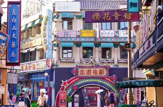 ▲ 广州街香港街景区是横店影视城六大经典景区之一,是横店影视城第一个建造起来的景区,于1996年8月为拍摄历史巨片《鸦片战争》而建,以逼真的实景建筑,艺术地再现了1840年前后的羊城旧貌和香江风韵。广州街占地300多亩,香港街占地120亩。古朴的街巷点缀着“花城”,透出沧桑的铁轨上卧着老式机车,交错的河汊流入“珠江”,“十三夷馆”宛如万国建筑博览会,天下第一茶楼“天澜阁”则集亭台楼榭之大全,尽显华夏建筑风流。