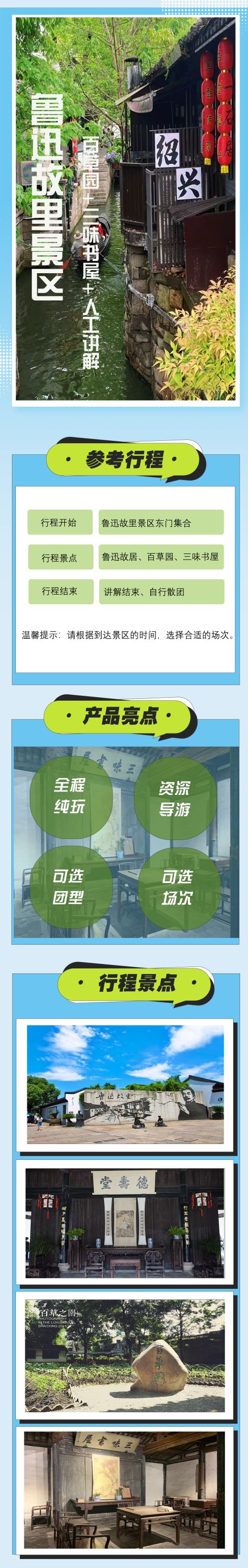 【鲁迅故里景区】绍兴鲁迅故里占地面积50公顷,有绍兴鲁迅故居、百草园、三味书屋、鲁迅祖居、土谷祠、长庆寺、鲁迅笔下风情园、绍兴鲁迅纪念馆等一大批与鲁迅有关的人文古迹。绍兴鲁迅故里保护和延续绍兴古城的传统风貌的典型,打造成生态型的“文物森林”,体现了绍兴古城保护的完整性,被誉为中国名人故居保护的范例 。
