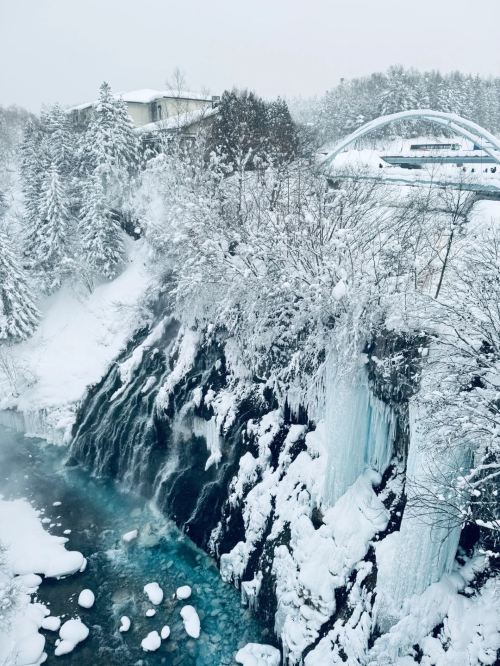 ▲ 白须瀑布的名称源自其白色的水雾,这是由于温泉水与冰冷的空气接触后产生的。