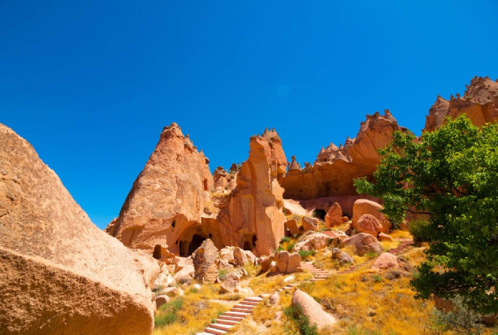 然后,前往伊赫拉拉山谷,这是一个受欢迎的徒步旅行区域,在那里你可以看到拜占庭洞穴教堂和其他奇特的地貌。 徒步路线约4公里,沿途经过梅伦迪斯河。徒步结束后,在俯瞰梅伦迪斯河的迷人餐厅享用丰盛午餐,一边欣赏美景一边补充能量。之后前往卡帕多西亚的宗教建筑塞利梅修道院。