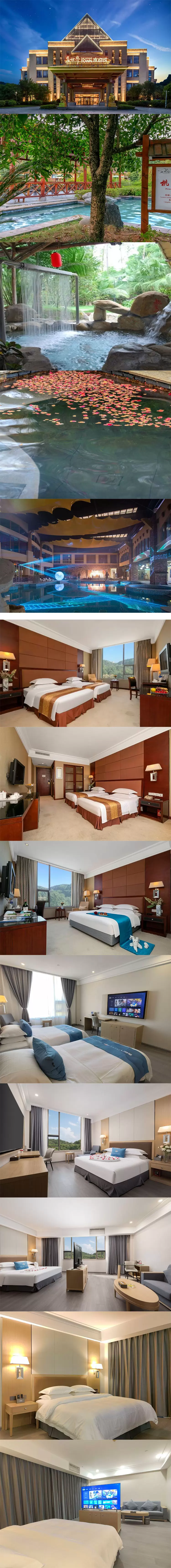 咸宁万豪温泉谷度假区位于潜山森林公园正门,美丽的温泉区月亮湾路段,淦河缓缓从旁流过,自然环境优越。温泉谷出口水温53℃,直接引至各温泉池,室内温泉、露天温泉、汤屋、水上乐园等多种项目,带给人非同凡响的感受。