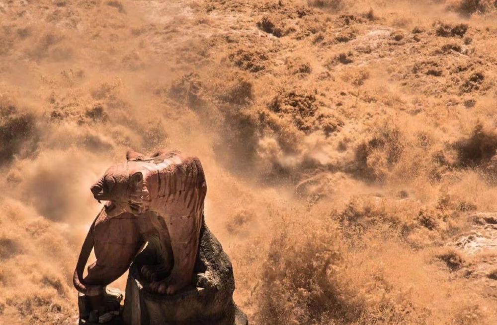 ▲ 湍急的黄河水如黄褐色巨龙奔腾,浪涛翻涌似大地在震颤。石虎雕像威风凛凛,蹲踞石上,身姿矫健,皮毛纹理仿若蕴含力量,与汹涌水势对峙,苍凉雄浑的气息扑面而来,尽显自然磅礴与雕塑的坚毅,勾勒出一幅震撼心灵的黄河壮景 。
