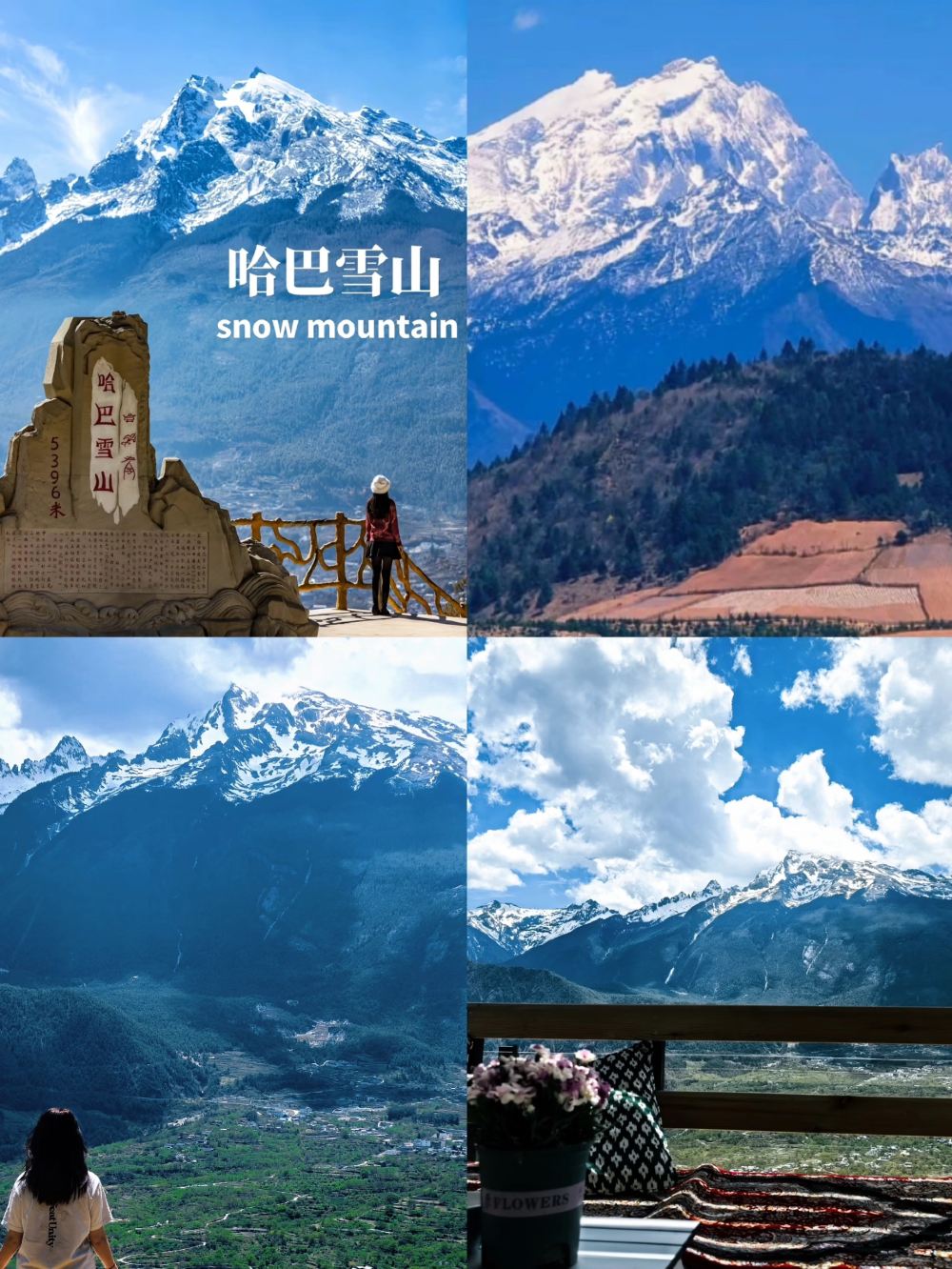 ▲ 哈巴雪山观景台位于云南省迪庆藏族自治州香格里拉市,在G214国道旁海拔约3000米左右,可免费参观,是远眺海拔5396米哈巴雪山之地,雪 山、峡谷、蓝天、白云与村庄构成壮美画卷。