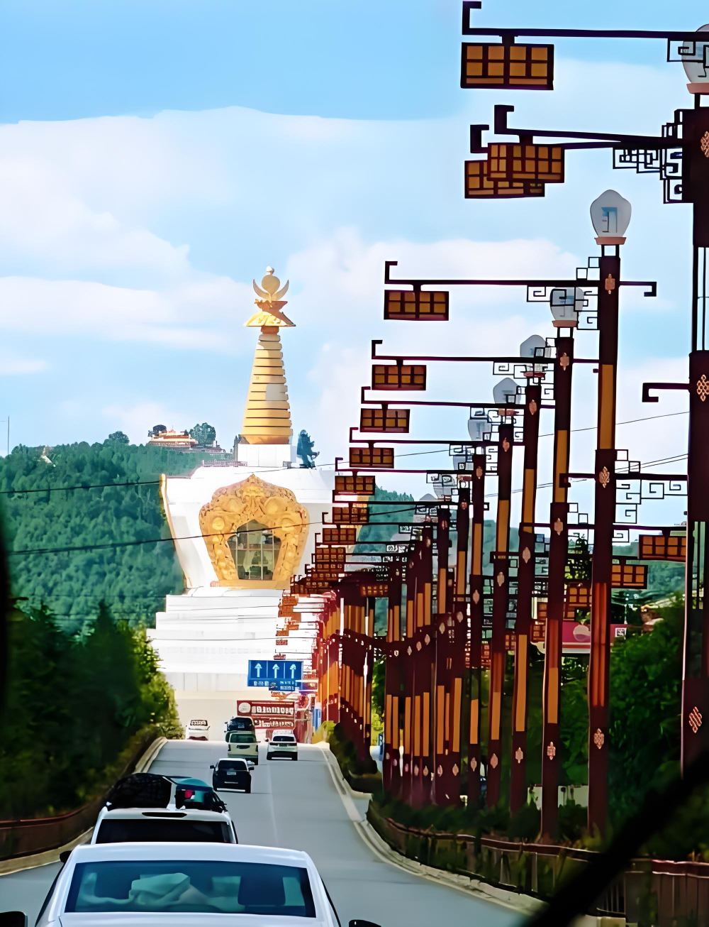 ▲ 香格里拉和谐塔中塔(又称塔中塔)位于中国云南省迪庆藏族自治州香格里拉市建塘镇康珠大道1000号,是一座高108米的藏传佛教白塔,以其独特的塔中塔结构和深厚的宗教文化意义成为香格里拉的标志性景观。 象征意义:塔中塔被誉为“香格里拉之窗”,代表藏传佛教的宇宙观和生命轮回,也是多民族宗教和谐共存的象征。 转经文化:塔周环绕108个转经筒,信徒顺时针绕塔祈福,体现藏族“转经即诵经”的信仰传统。