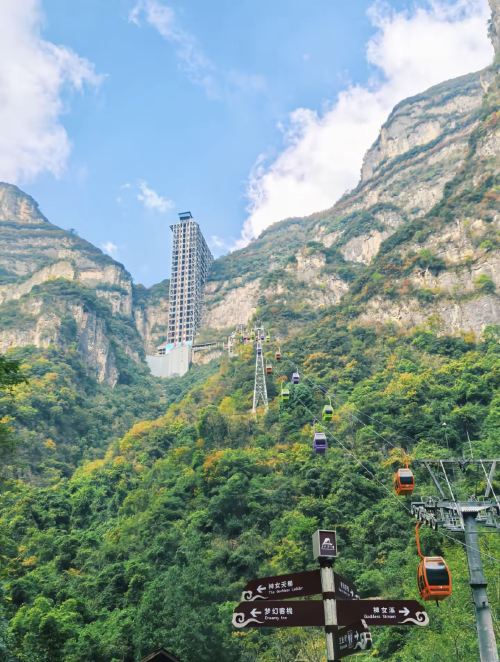 三峡云巅·神女天路景区平均海拔1200米,地处巫峡西岸,将美丽的峡谷风光展示在游客面前,是赏巫山红叶的绝之地。乘坐观光车,在天盏灯、仙履台、瑶台、山神庙、飞云台等观景台可远眺神女峰、俯看神女溪。经九龙索道,神女天梯近观神女溪,当地人又称为“美女溪”,溪长15公里,其中有10公里为人迹罕至的原始山谷。三期蓄水后,可到溪内峡谷纵深处探密,优美的风景与原生态居民“惊现”在游人面前。后经九龙索道,神女天梯,观光车返回到达柳坪游客中心。