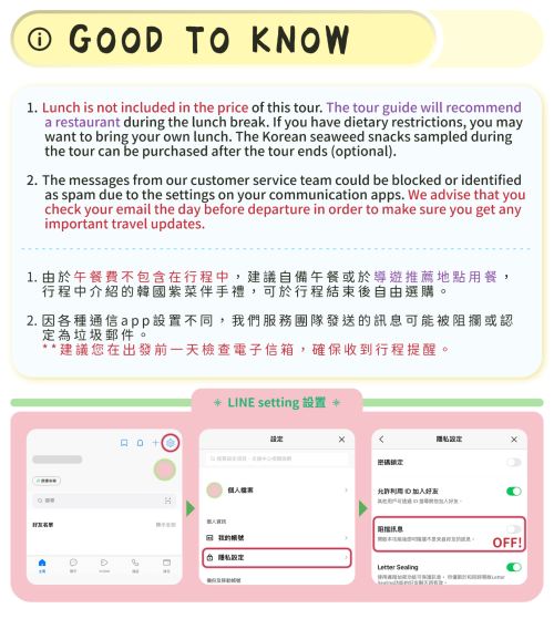 ▲ 3岁至12岁请选择小童订购;未满36个月之幼儿可免费参加行程,但不占单独座位。若有同行幼儿,请于订购时备注并提供年龄证明文件。 本行程之最低成团人数为6-8人,如未达此人数,我们将主动联系您协商更改出行日期或办理全额退款,并于出发前一日透过电邮通知