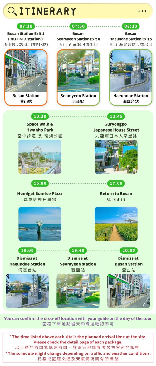 ▲ 本行程所附为基本人身保险,仅于发生重大人身事故时适用,建议旅客自行加保旅游保险,以获得更全面保障。行程所用接送车辆将依参加人数安排:1至3人使用Solati或Starex小型车,14人以上将安排中型巴士。本行程为共乘型态,并非私人包车服务,敬请理解。 导游语言将依预约状况安排,以中文或英文为主。如预约人数已满或未达特定语言成团人数,导游语言将视情况调整,恕不另行通知。
