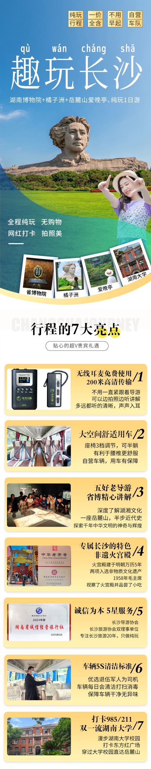 【一价全含】长沙橘子洲+湖南博物馆+岳麓山一日游纯玩【[一价全含]门票全含+春晚分会场火宫殿用午餐(分餐制)+全程无线耳麦讲解+赠火宫殿9折小吃券+矿泉水】