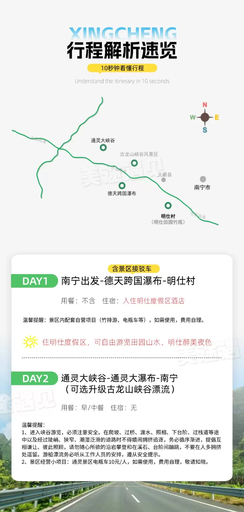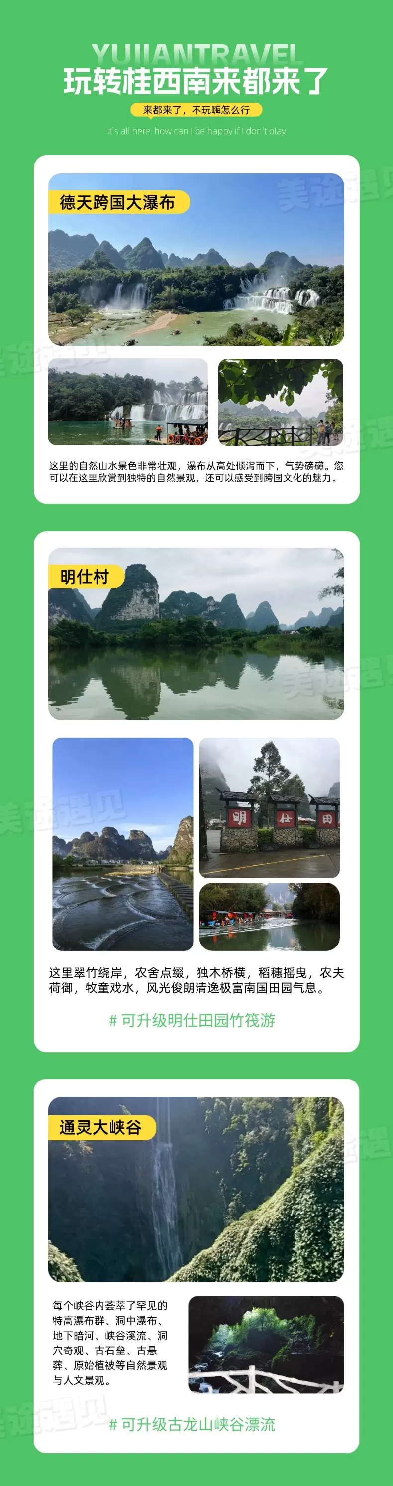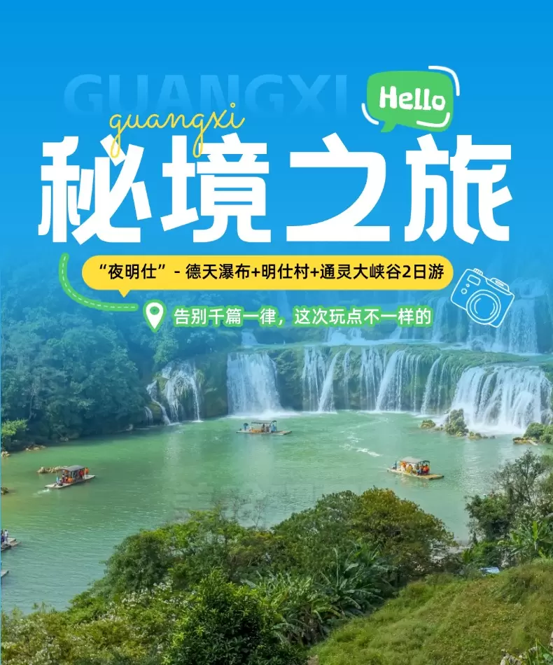 德天跨国瀑布景区+通灵大峡谷二日游【住明仕度假区+含德天通灵门票/德天景区接驳车+不进购物店,自由漫游夜明仕】
