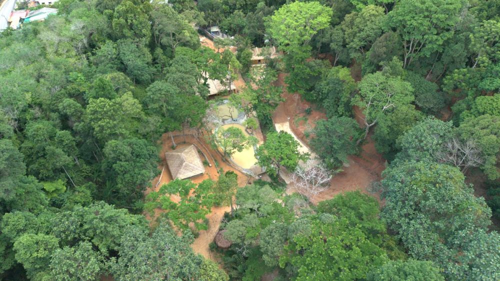1、山谷形状的保护营,占地超过2万平方米,绿树环绕,生态非常自然,园区里遍布泰国特色的果树,榴莲树,椰子树,蛇皮果树,菠萝树等等。