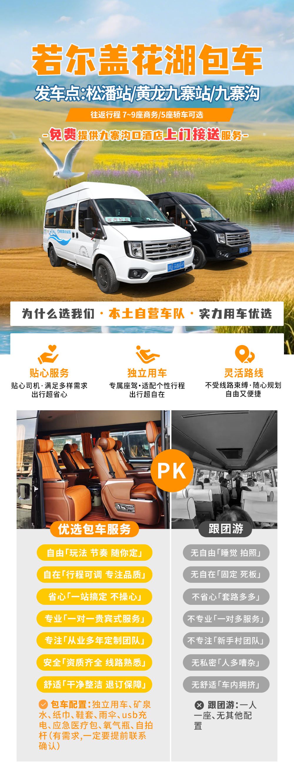 花湖包车「高铁站 九寨出发」 往返 商务 轿车 任意发车时间【可选包车:高铁站出发往返包车|九寨沟出发往返包车】