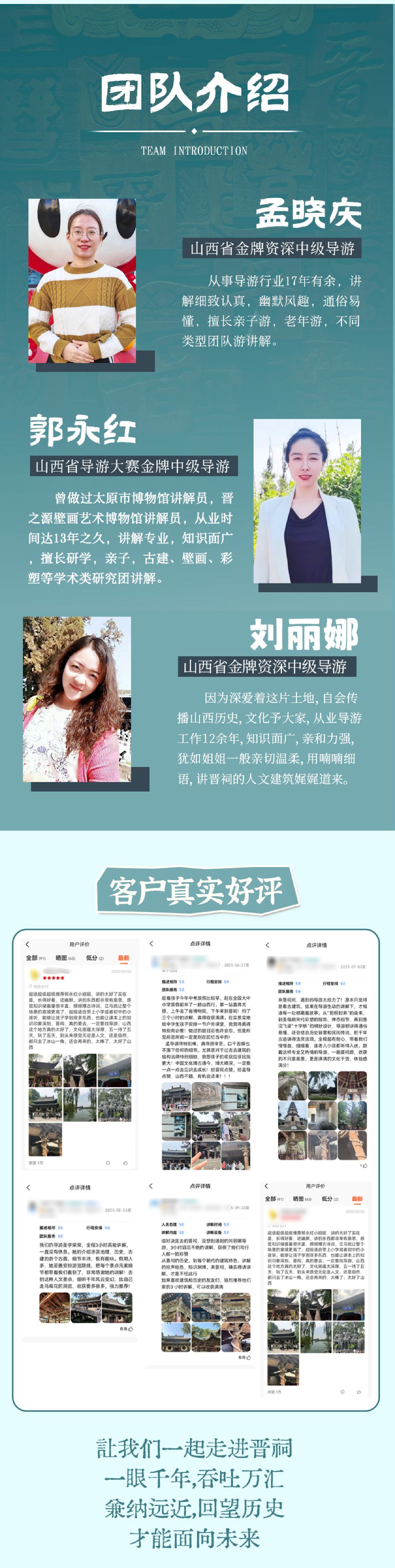 ▲ 晋祠散客拼团讲解,天天发团 时长:3小时 场次:上午9点和下午14点 讲师:10年以上资深讲解