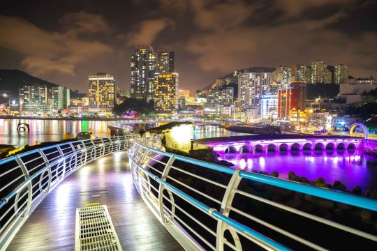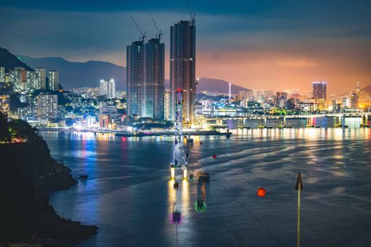 ▲ 城市灯火倒映在海面,波光粼粼