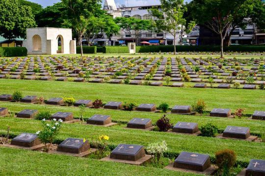 参观这座精心维护的墓地,这里安葬着6,982名盟军战俘的遗骸,他们在修建泰缅死亡铁路期间丧生。这是开启当天历史之旅的一处宁静而感人的起点。
