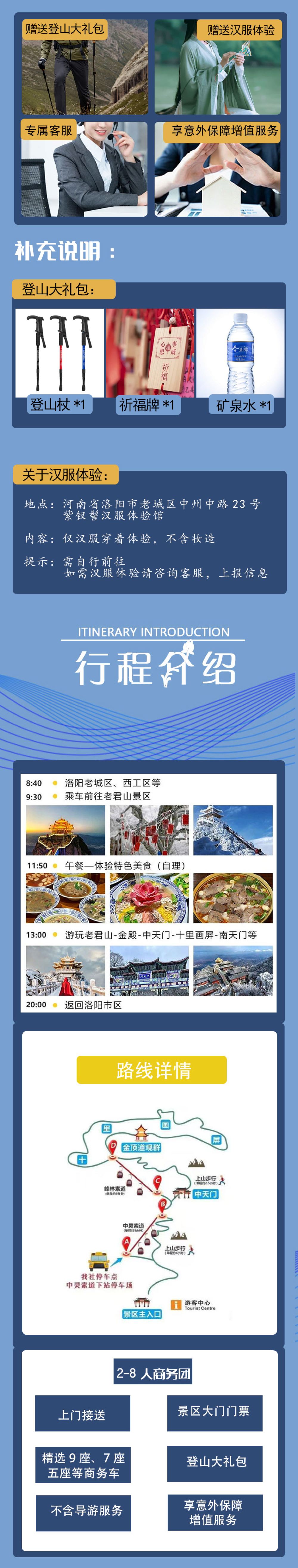 2.若有返程交通:高铁、火车、飞机等,请提前告知导游和司机师傅。节假日期间景区索道容易拥堵,返程时间无法保证,不建议客人当天赶车离洛。