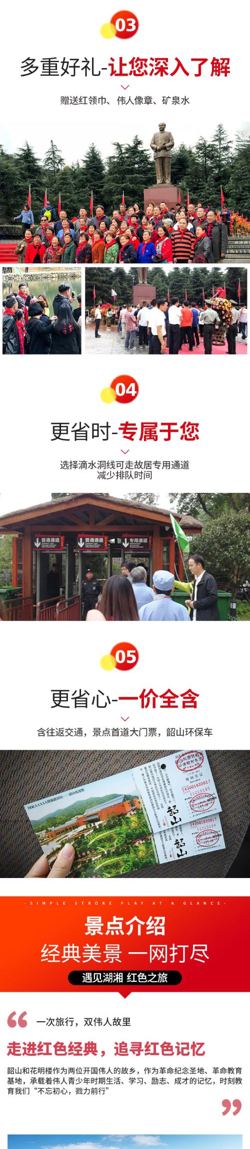 【绿色通道】如遇韶山绿色通道关闭,请以景区为准,与旅行社无关!无费用可退敬请知晓,如已安排走韶山绿色通道则默认为滴水洞门票已取,如因个人原因不参观滴水洞则无门票可退!