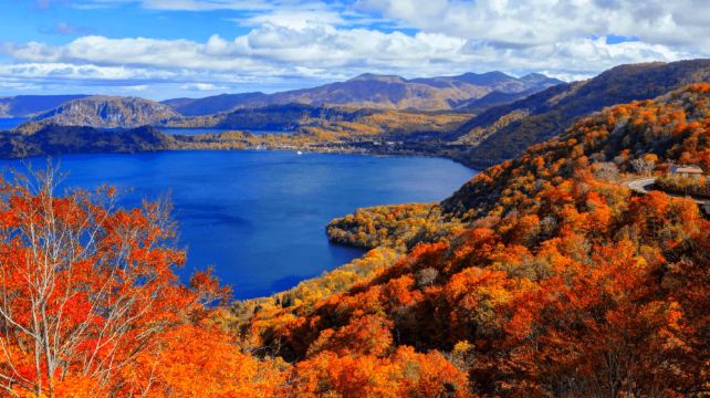 十和田湖一座神秘而美丽的湖泊。随着季节变化展现出不同风景,春来一片新绿,秋天层林尽染,冬季白雪皑皑。碧绿清澈的湖水映出这些各具特色的四季自然风貌,充满神秘美。