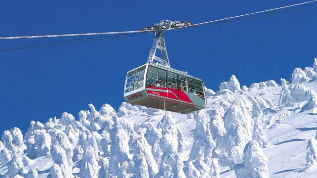 乘坐八甲田山缆车欣赏动人风景,秋季山上的枫叶将整个山脉染成了金黄、红色和橙色如大自然的一幅绚丽画卷。冬季的树冰奇景更是一种独特的自然奇观,数以百计的树木裹于白雪与冰霜之下,幻化为外型奇特的怪物模样。