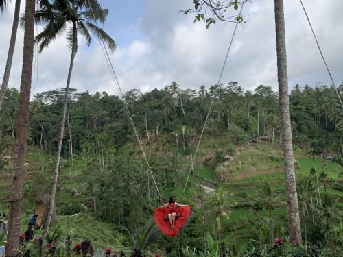 ▲ 如果您想尝试秋千,您可以在 UBUD SWING 尝试——这是德格拉朗地区**的秋千,可以欣赏到壮观的稻田景色,还可以进行农业活动。