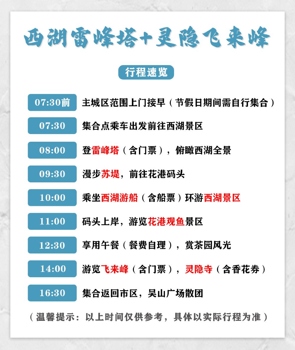杭州西湖风景名胜区纯玩一日游丨雷峰塔丨西湖游船丨灵隐寺【一日游丨纯玩团丨杭州主城区范围内免费上门接丨天天发班】
