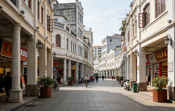 ▲ 华盖路步行街,在这条充满岭南特色的街道上边逛边品尝顺德双皮奶、顺德鱼皮等美食