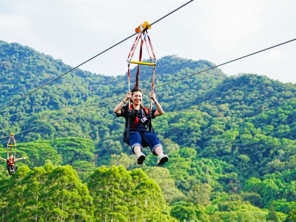 ▲ 门票包含:云山丛林飞跃乐园4选1路线游玩票+白云飞索票+鸣春谷门票+白云山门票+2张上山观光车票 适合人群: 年轻人团建——高空挑战,团队协作,刺激又好玩! 亲子家庭——萌宠互动+轻探险,孩子放电,家长放松! 户外爱好者——徒步+极限运动,一次满足你的冒险心! 小贴士 穿搭建议:运动鞋+轻便服装(高空项目需穿安全装备)。 拍照打卡:飞索终点、鸣春谷瀑布、山顶观景台。