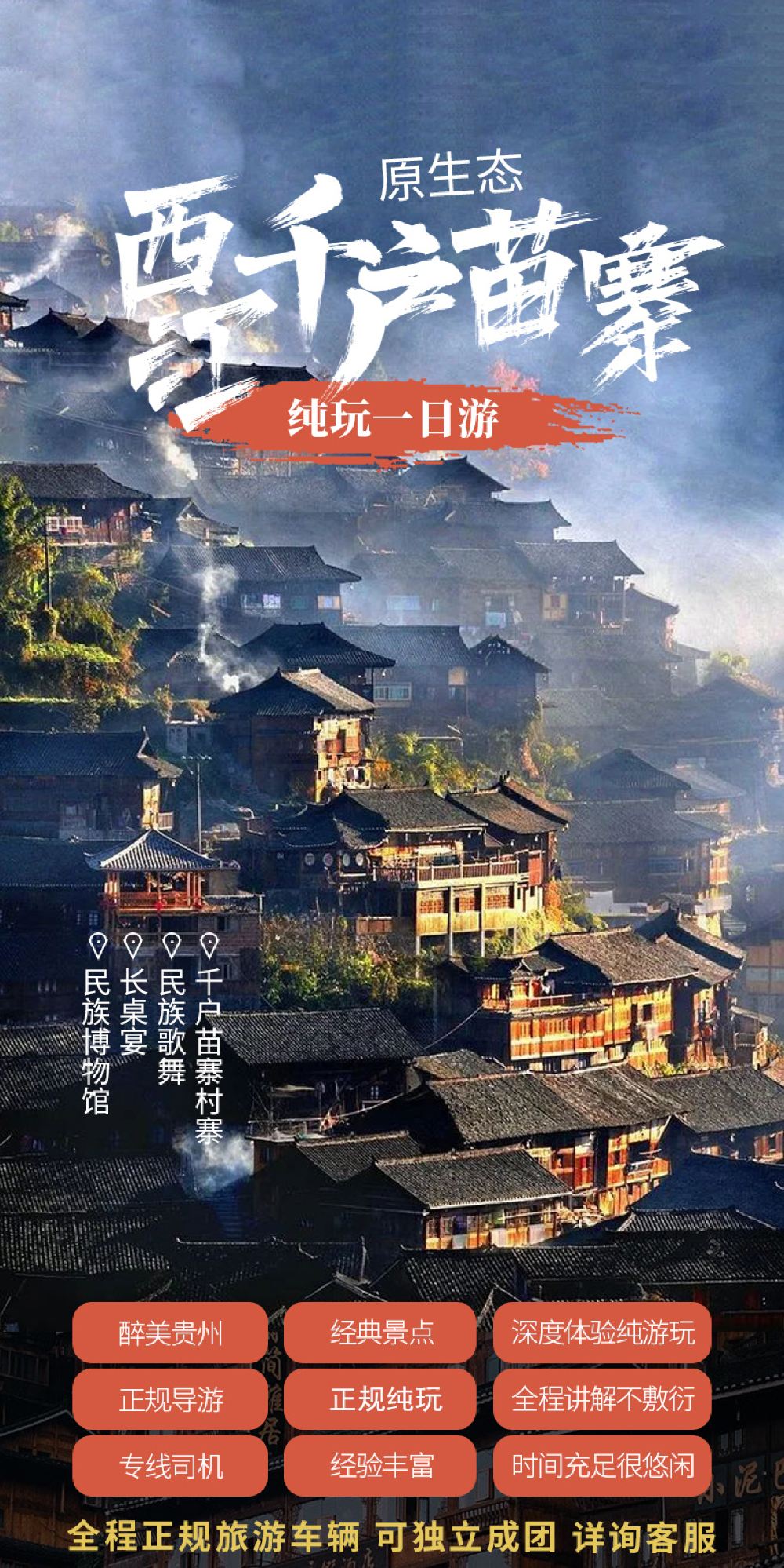 贵州西江千户苗寨一日游【纯玩不进店/苗服换装体验/长桌宴】【世界的苗族聚居地 、摄影爱好者追梦目的地 苗族人的布达拉宫,天下西江,观苗族聚居村寨】