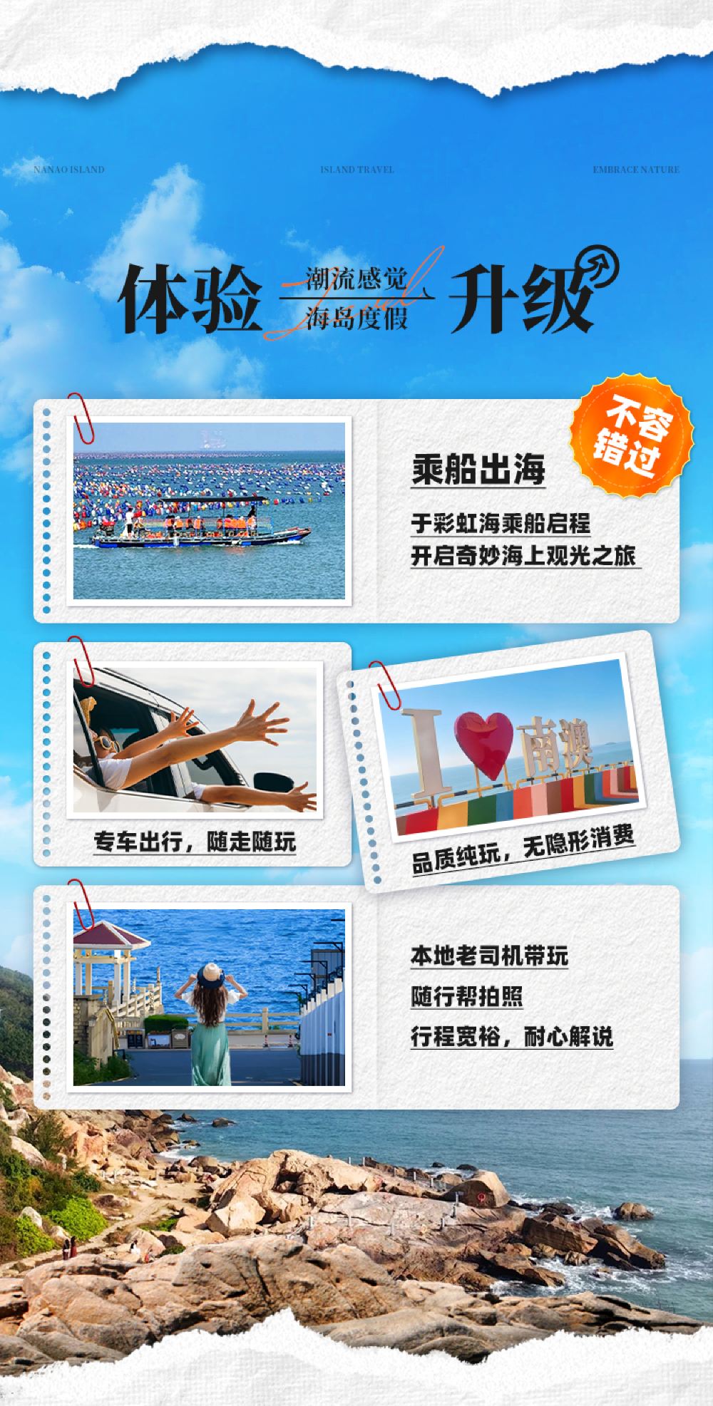 汕头南澳岛一日游【优选司导+彩虹海乘船出海观光+纯玩无购物】【【多地接送】汕头/潮州/南澳岛/汕头站/揭阳机场/潮汕站范围均可以接送,可异地上下车,游玩更省心!】