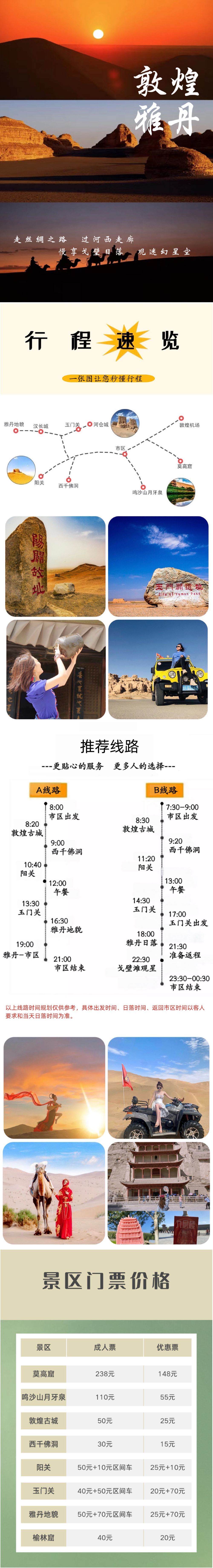 3、雅丹地质公园景区日落班车售票时间每个季节都不相同,所以具体出发和结束时间以提前一天下午司机电话联系客人商定为准。