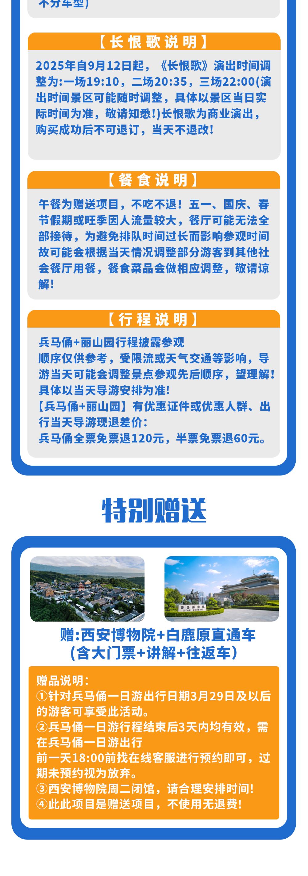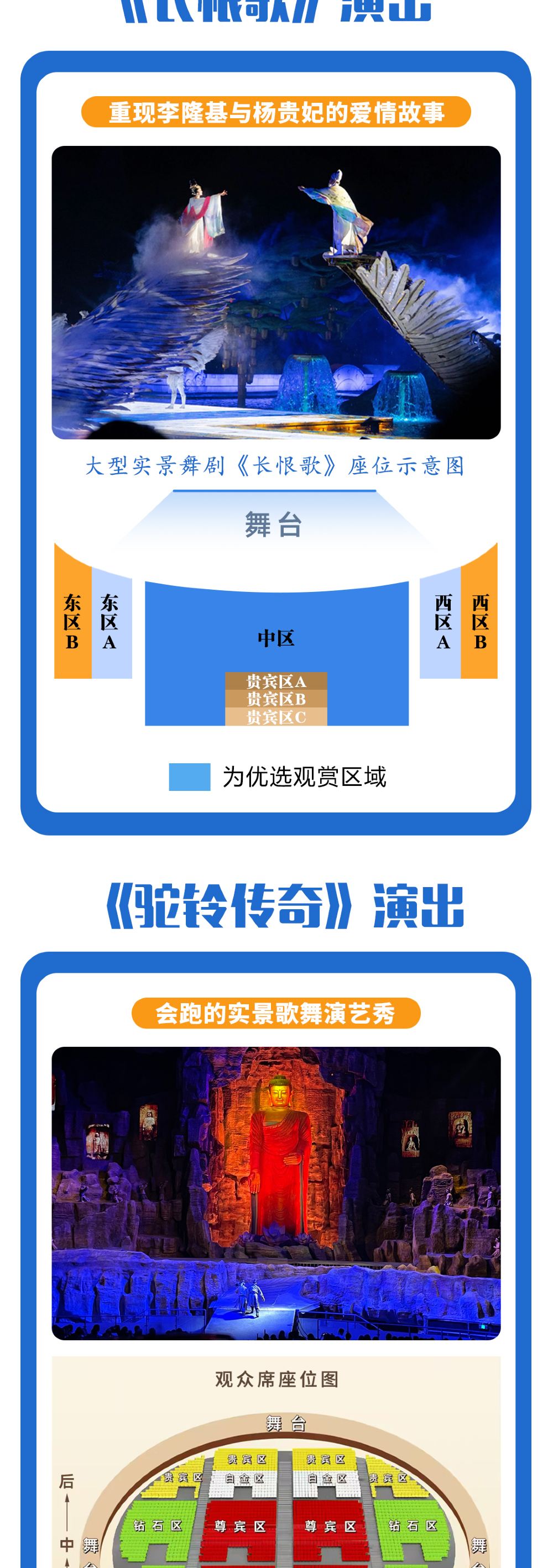 ④2025年自10月17日起,长恨歌时间调整为:第一场:18.30-19.40,第二场:19.55-21.05,第三场:21.20-22.30(演出时间景区可能随时调整,具体以景区当日实际时间为准,敬请知悉)