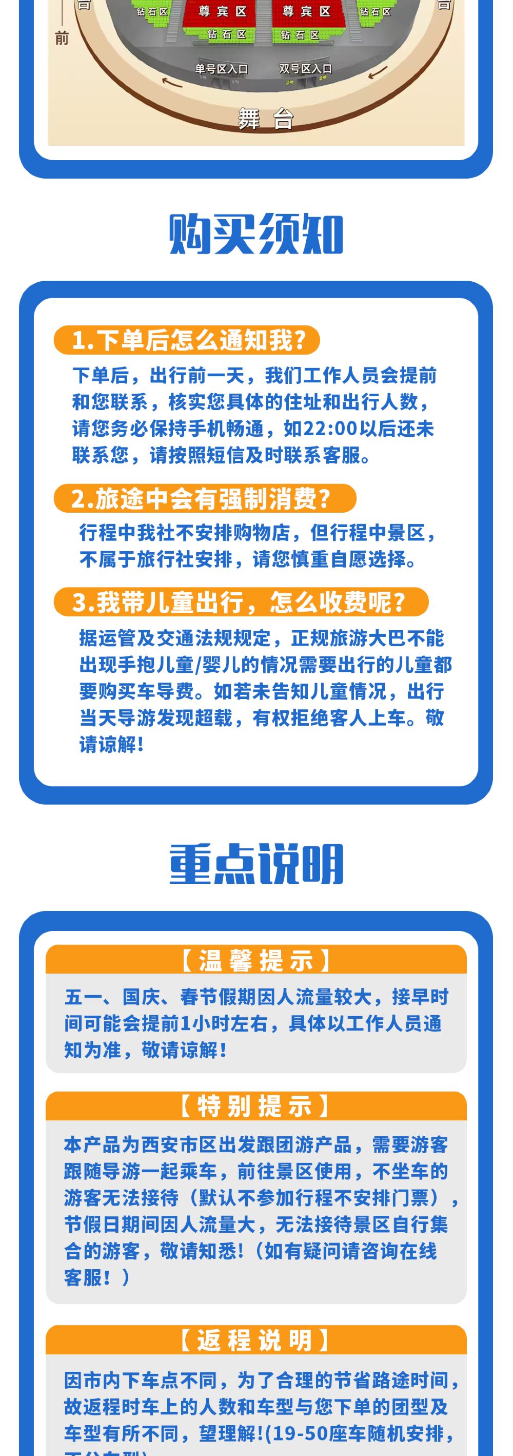 ④演出门票属特殊商品,一经售出,恕不退还;下单后当天不可退改,除景区通知停演以外,其它任何原因,当天都是不可退票!介意者,请谨慎购买