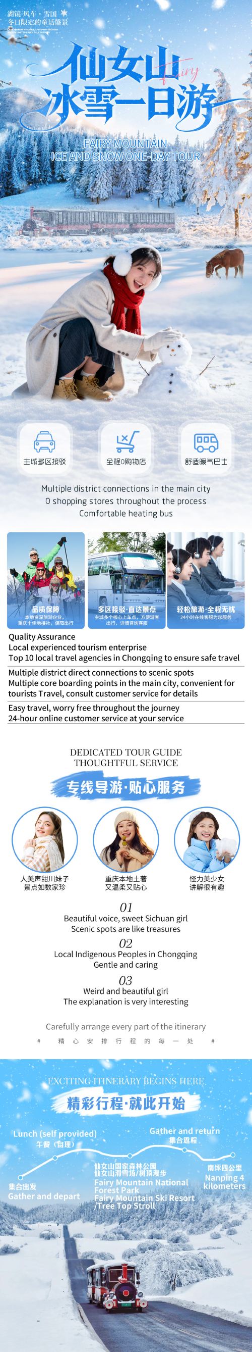 4、冬季路面湿滑,前往景区的车辆大幅增加,如遇特殊情况(如堵车、天气原因等),导游会根据当天实际情况调整行程游览顺序,敬请谅解。
