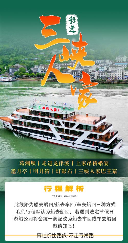 宜昌船进三峡人家一日游【宜昌东/万达/均瑶广场接送游轮直达】【[纯玩享受]万人出游好评连连,本公司游船自发团,全程纯玩,如有进店承诺赔偿1000元;】