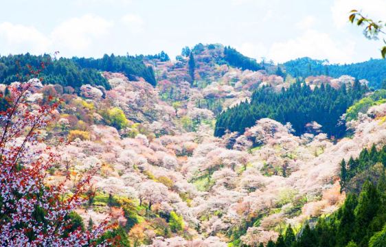 ▲ 吉野山是日本非常壮观的赏樱胜地之一,以其3万株白山樱沿着山脊渐次开放的“一目千本”绝景而闻名。它还是联合国教科文组织世界遗产,赏樱路线会经过很多重要古迹,如日本国宝金峯山寺藏王堂。