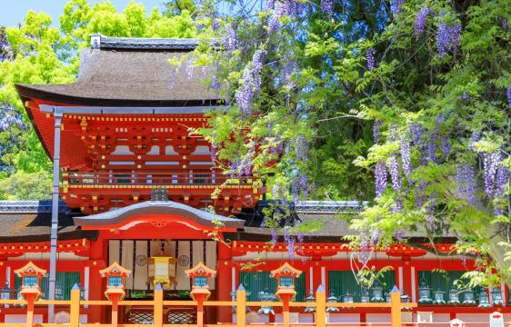 ▲ 春日大社:朱红色的神殿与数千盏石灯笼、吊灯笼是其标志。寺界内有2,000盏石灯笼和1,000盏吊灯笼。每年2月和8月会举行万灯节,届时所有灯笼将被点亮,景象梦幻。