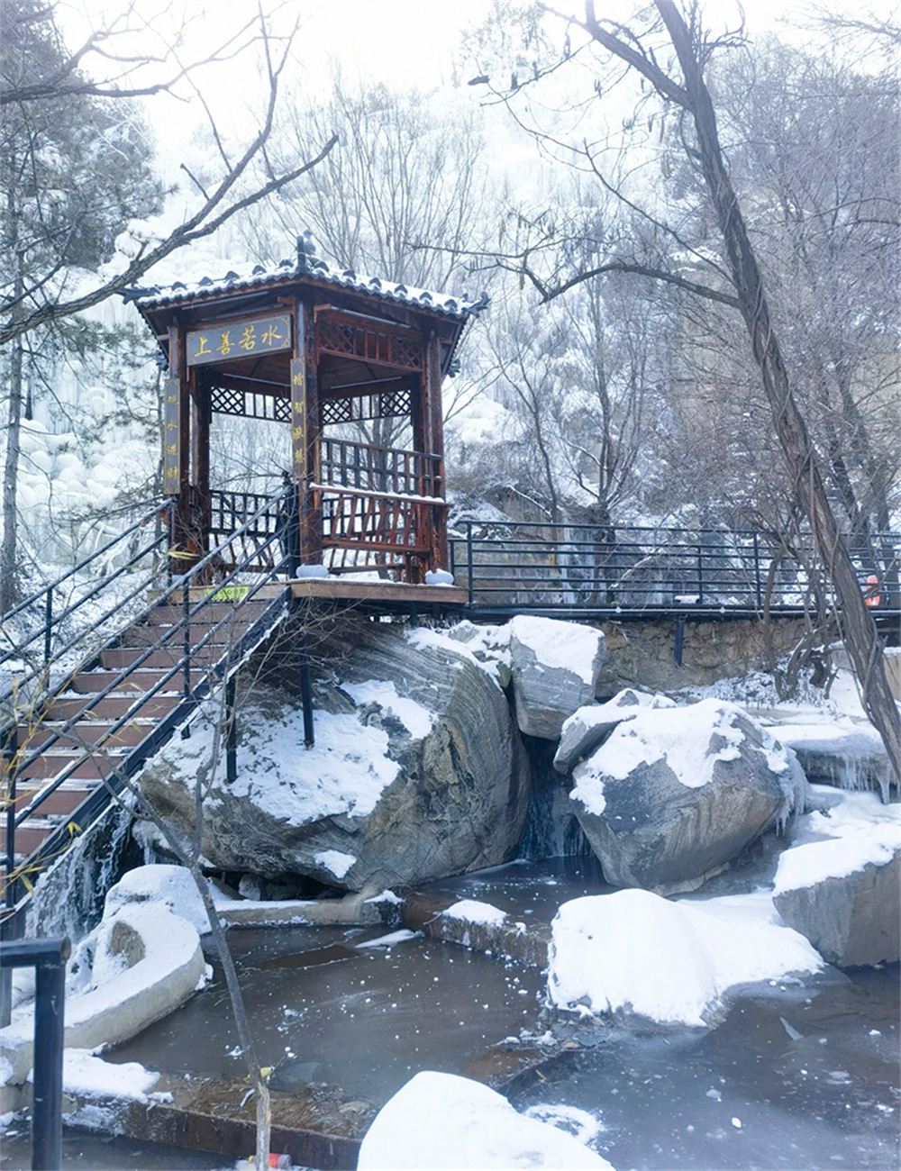 水瀑沟景区本身拥有二十多处瀑布,到了冬季,这些瀑布化身为璀璨的冰晶世界,垂直高度可达15米以上,是拍照打卡的好地方。