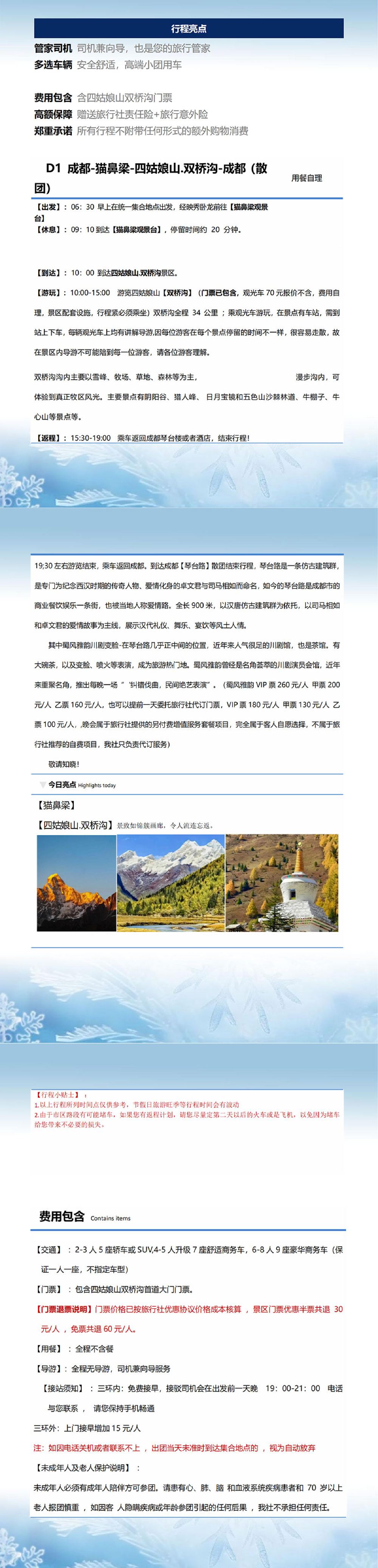 四姑娘山双桥沟一日游2-8人精品VIP小包团【精彩行程:一天打卡四姑娘山特色风景,感受川西的旅行】