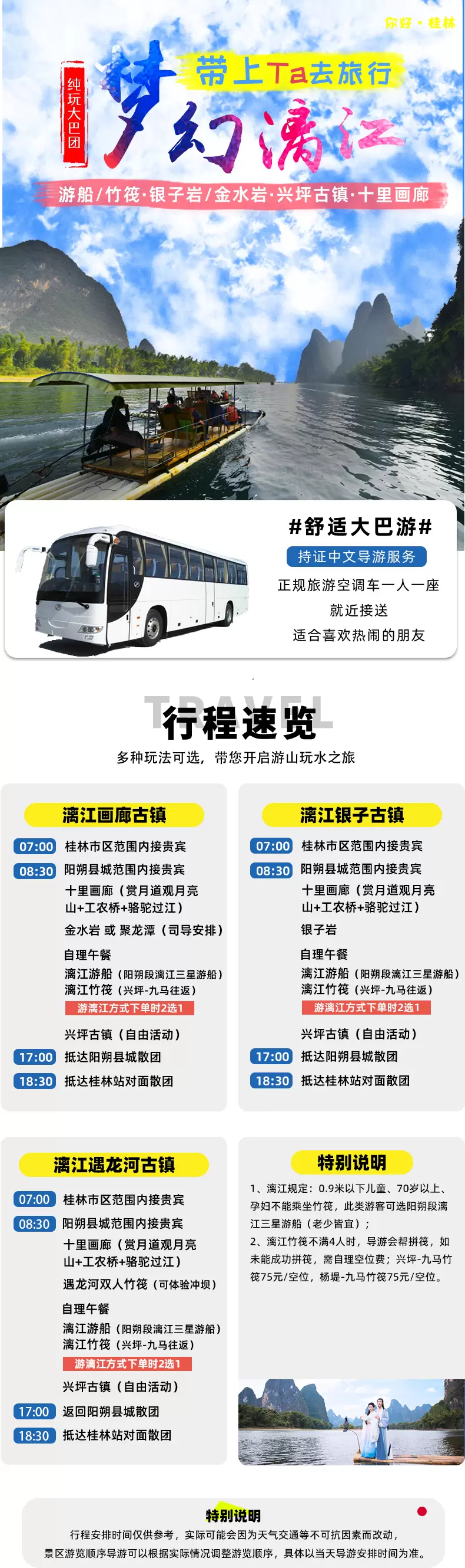 桂林漓江风景名胜区+二十元人民币背景图+十里画廊+兴坪古镇一日游【遇龙河竹筏漂流/溶洞多套餐可选丨纯玩大巴团】