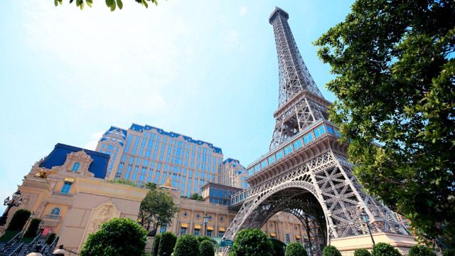 ▲ 巴黎铁塔依照埃菲尔铁塔 1/2 比例建造,并设有超过 6,600 只绚丽闪亮的景光灯,为您呈现浪漫璀璨的光影艺术, 闪耀澳门夜空!