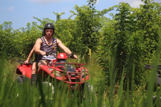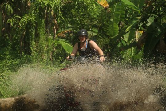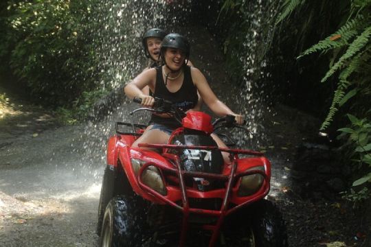 ▲ 惊险刺激的 ATV 探险——单人或双人穿越乌布茂密的丛林、瀑布、河流、稻田和标志性的洞穴隧道。