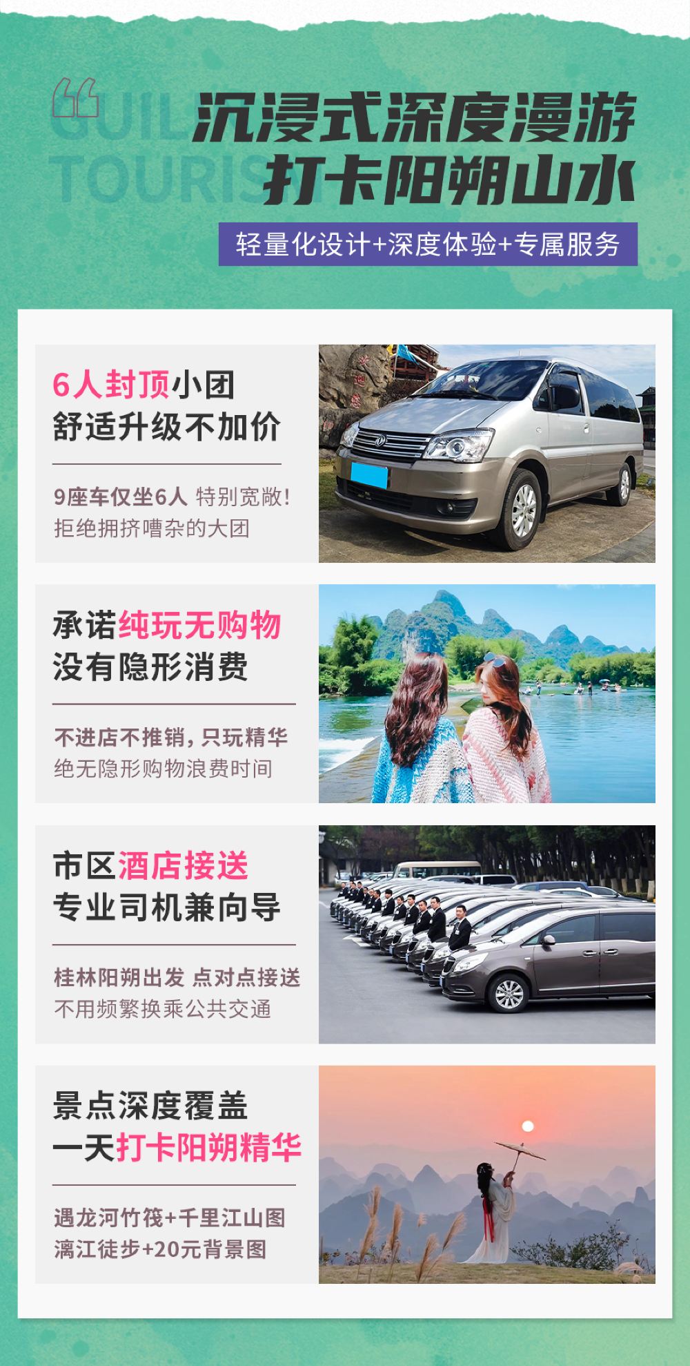 【6人小团 限时优惠】桂林阳朔+遇龙河竹筏+千里江山图一日游【2-6人精致小团, 出行前二天无忧退,2人即可成团,暑期限时优惠,告别赶场式旅游,服务品质升级】
