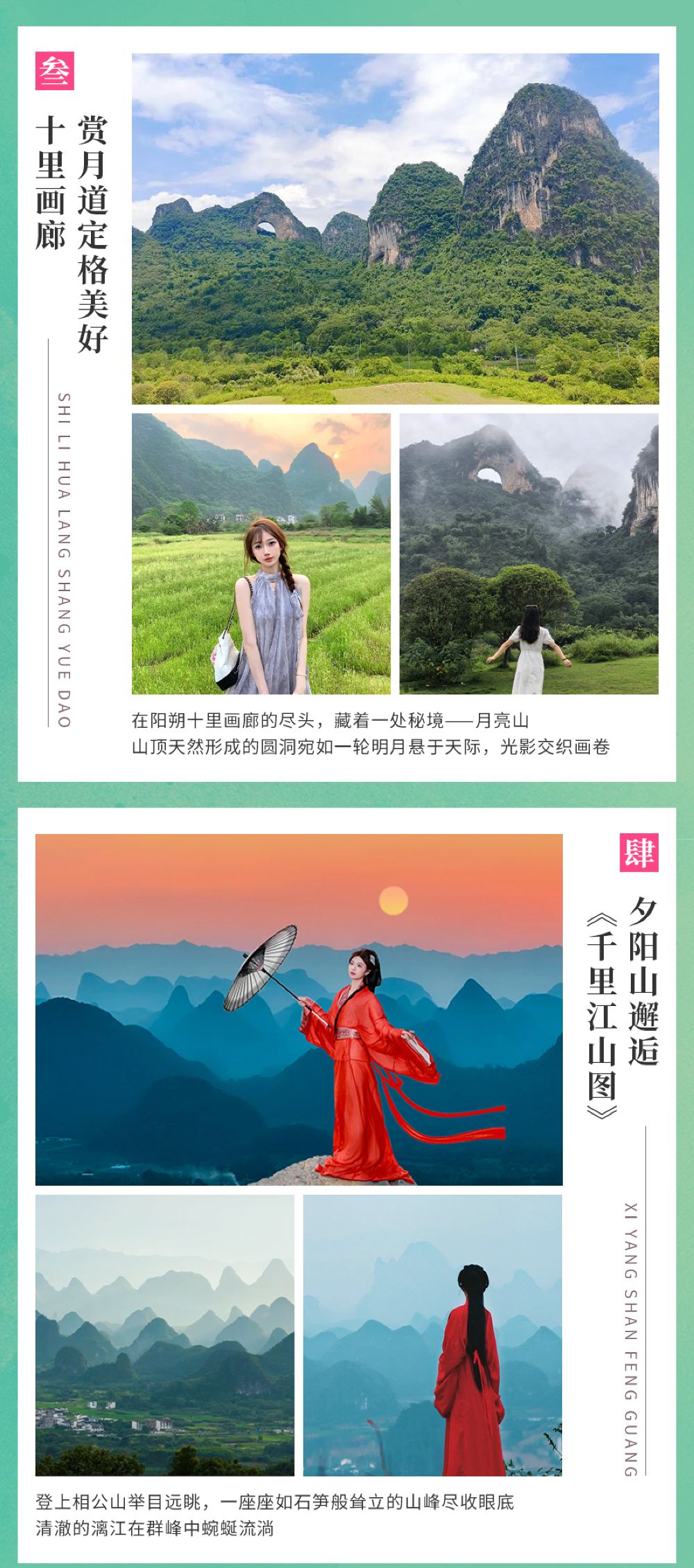 2、精华性价比路线,一天打卡遇龙河竹筏+千里江山图,还有小众漓江边徒步旅行