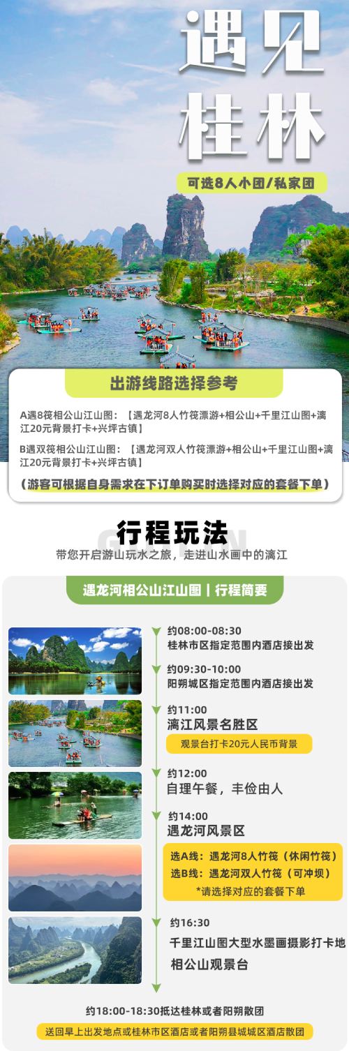 A遇8筏相公山江山图:【遇龙河8人竹筏漂游+相公山+千里江山图+漓江20元背景打卡+兴坪古镇】