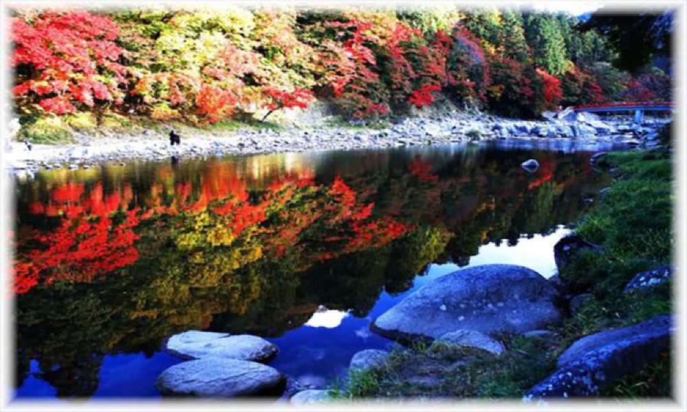 ▲ 香岚溪是日本东海地区非常著名的红叶观赏地,位于爱知县丰田市足助町的巴川之上。这里以秋季的红叶美景而闻名,每年11月,大约4000株枫树会逐渐变红,形成一片壮观的红叶绝景。
