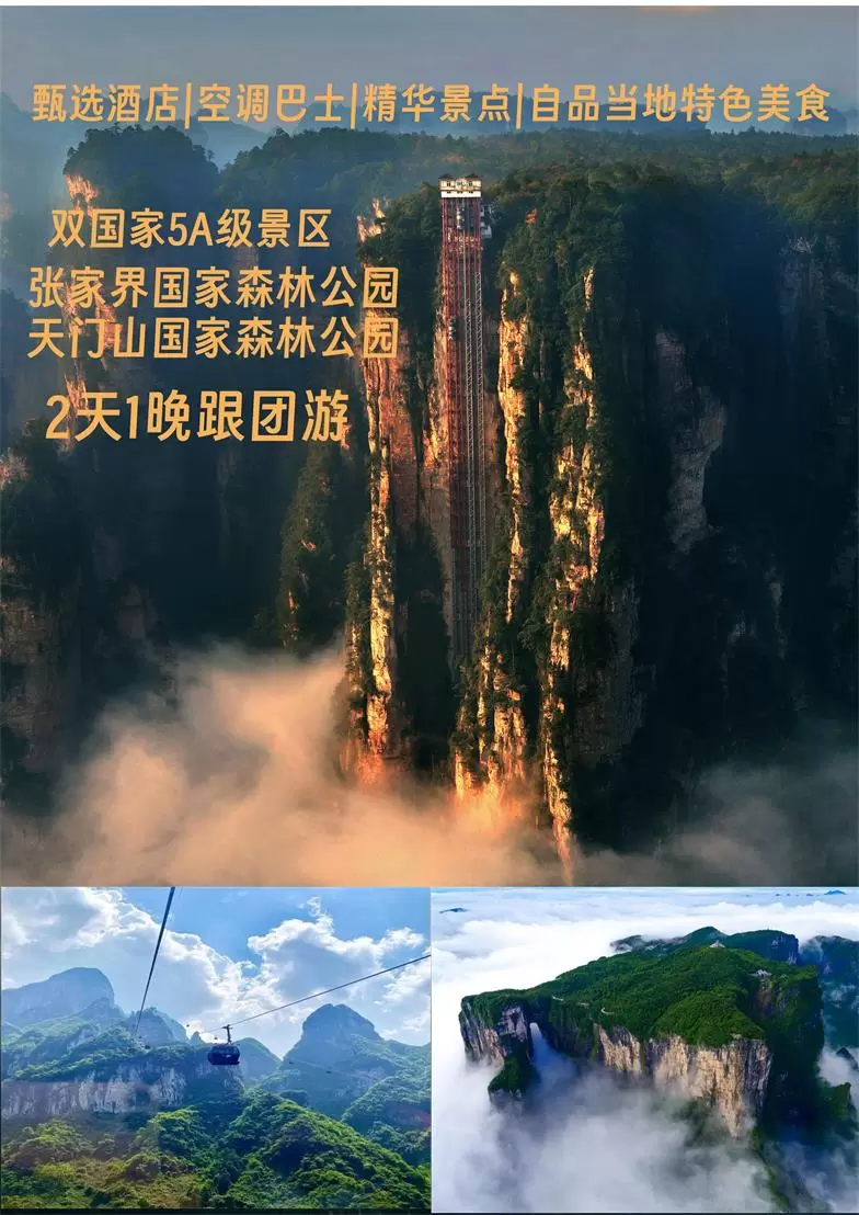 【2-16人品质纯玩拼小团】张家界国家森林公园袁家界+杨家界+十里画廊+天门山国家森林公园二日游
