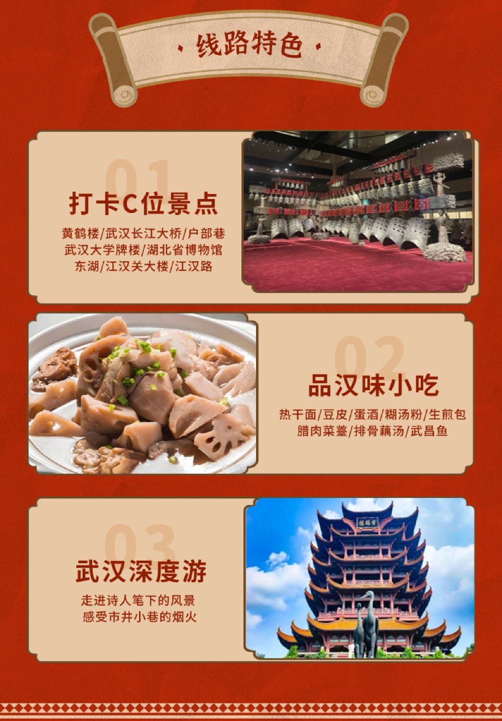 黄鹤楼+长江大桥+湖北省博物馆+东湖听涛+江汉路一日16人团【贴心安排二环内酒店上门接,特别赠送户部巷蔡林记热干面一碗。全程含无线耳麦,含《遇见楚庄王》表演。】