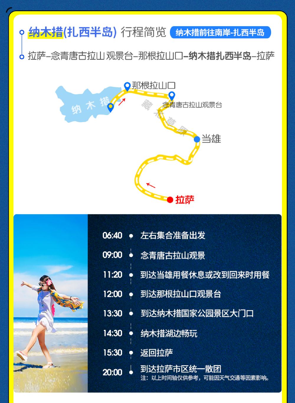 温馨提示:根据“冬游西藏”政策11月1日至次年3月15日纳木措免门票,本行程门票费用已减仅含纳木措观光车85元/人,任何优惠证件/人群均无优惠退费,请知悉。