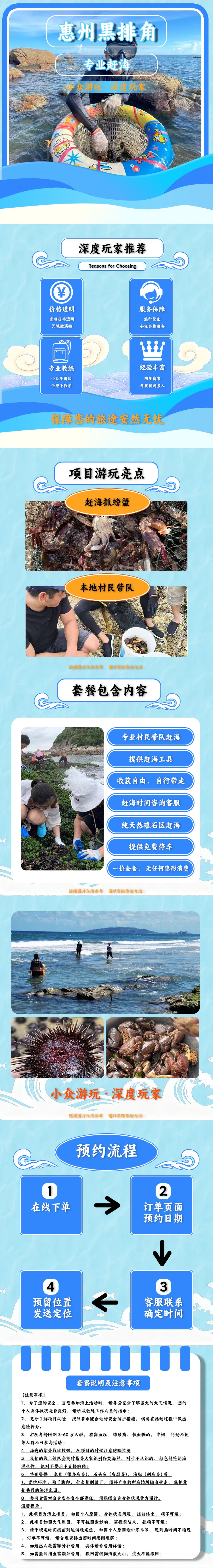 备注:赶海需要看潮汐时间,下单后会联系告知具体集合时间;