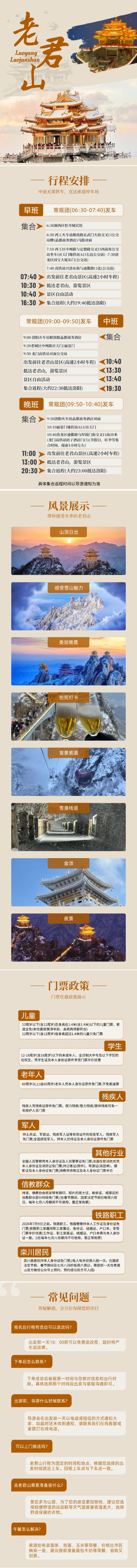 2.符合老君山景区规定的免票人群拍含门票套餐,导游车上退门票50元。免票人群需自行提前3天在景区公众号预约0元门票,无预约,不免票,不退费。